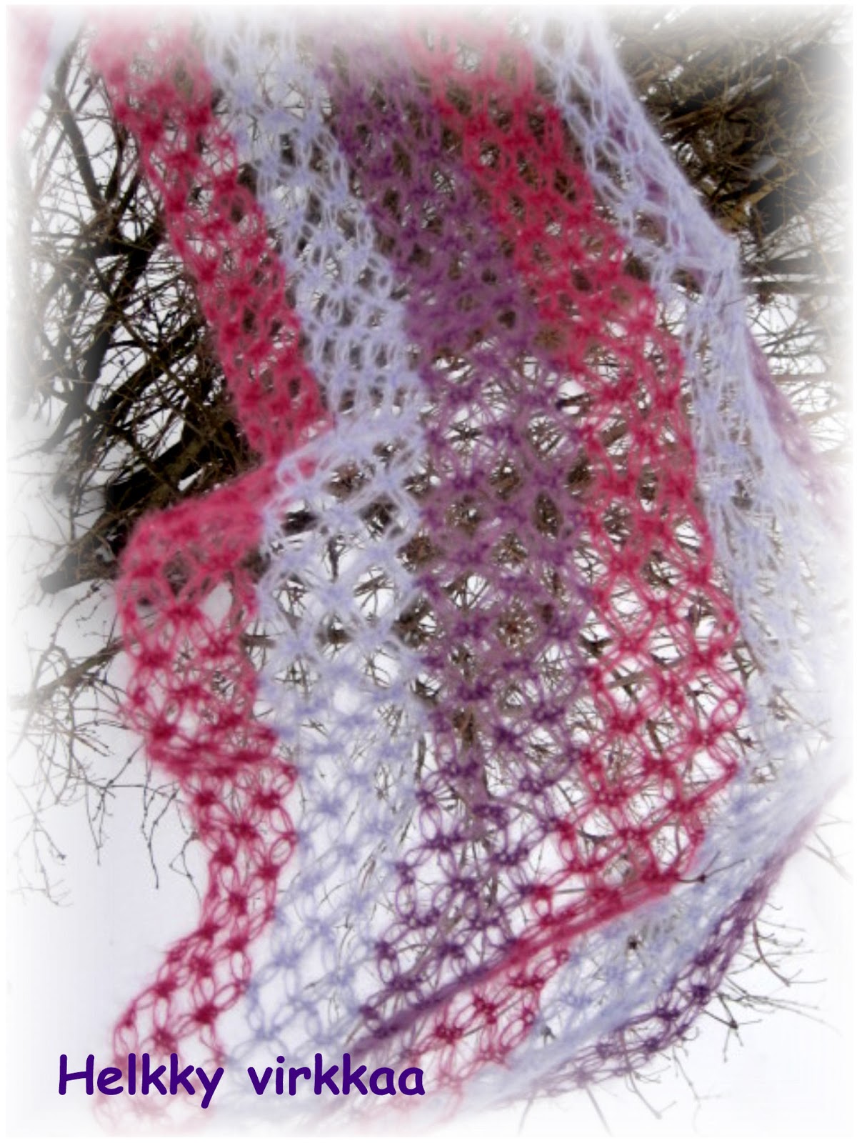 Todella kaunis huivi. Salomoninsolmuilla tulee tosi kaunis ja ilmava lopputulos.